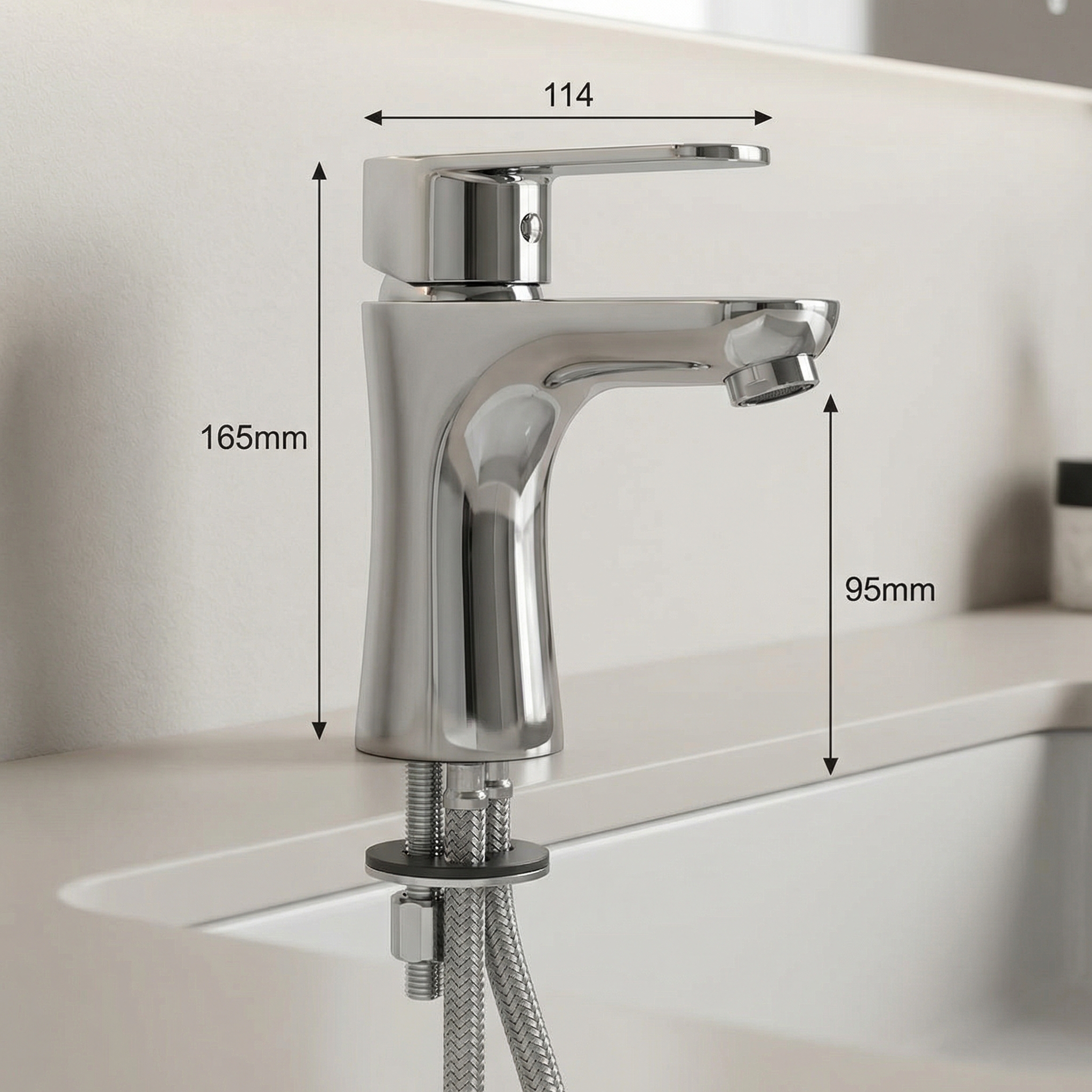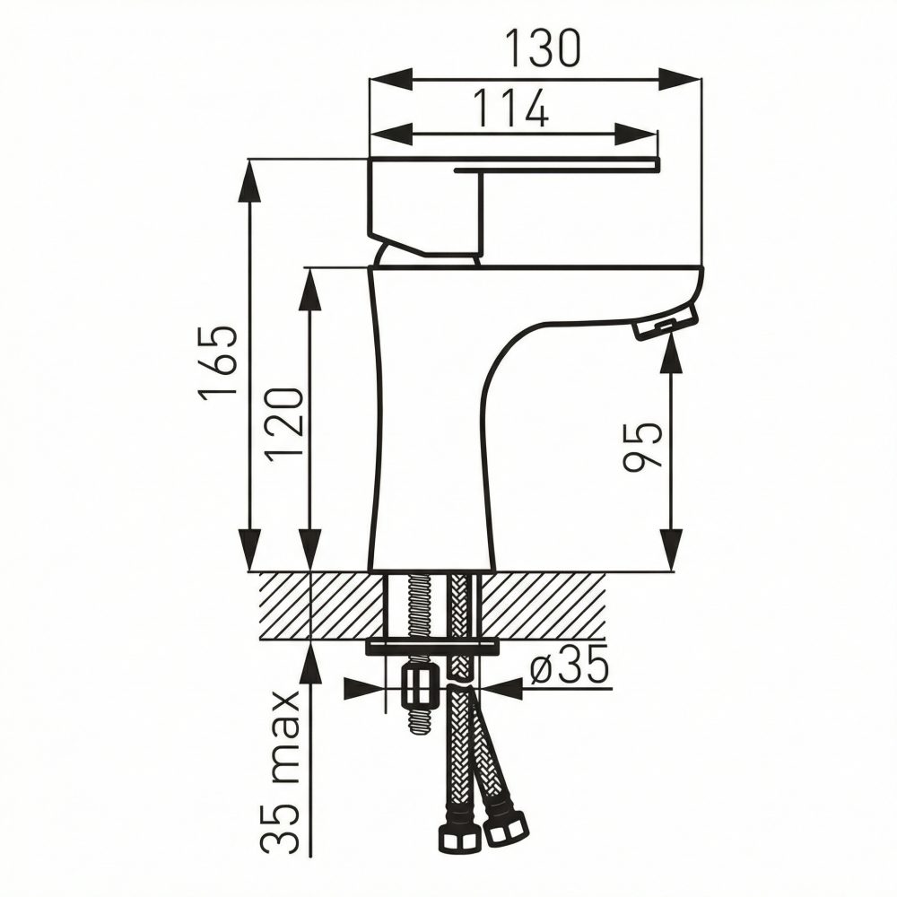 Armatura je namenjena montaži v eno odprtino. V kompletu je priložen avtomatski odtok G5/4, regulator pretoka M24x1 poskrbi za enakomeren curek, fleksibilne priključne cevi G3/8 – M10x1 pa olajšajo priklop.