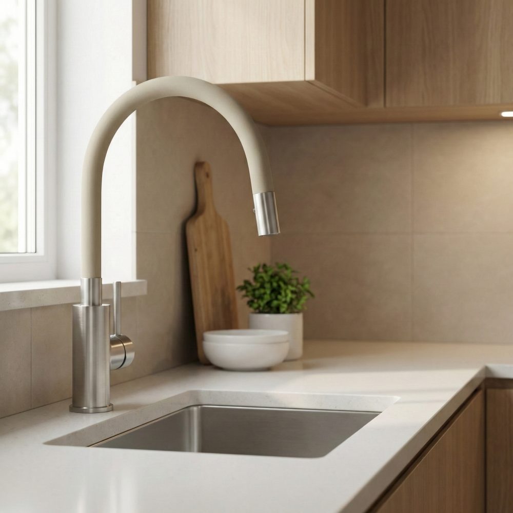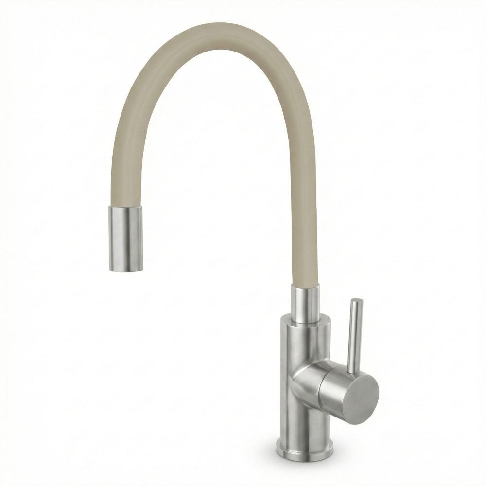 Kakovostna kuhinjska armatura s prilagodljivim izlivom.