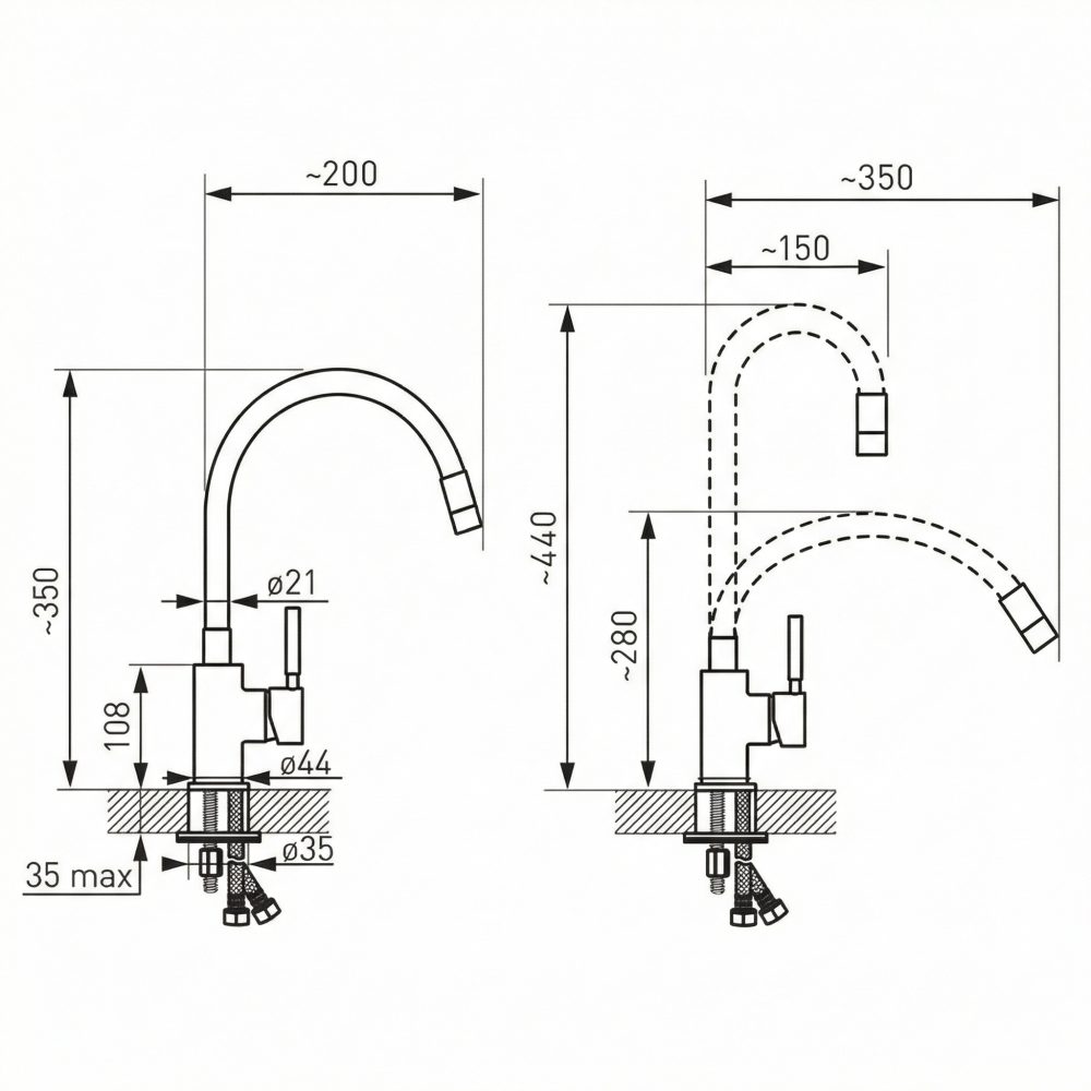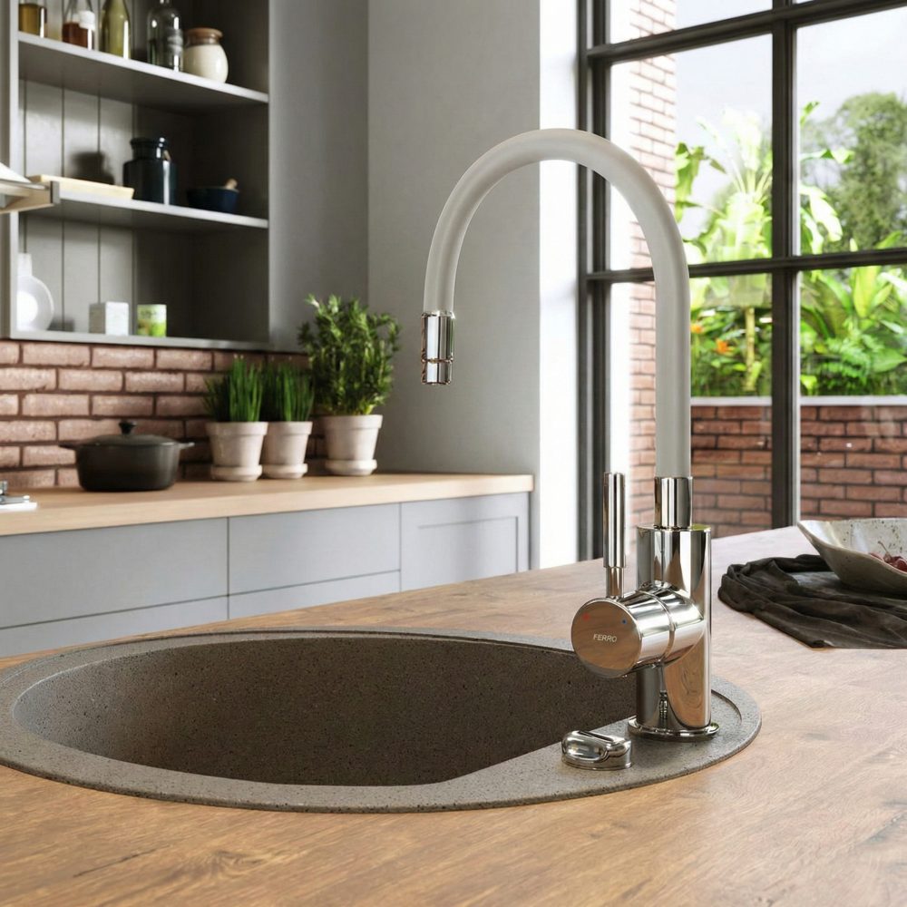 Opremljena je s keramičnim regulatorjem za zanesljivo in natančno delovanje ter je primerna za montažo na eno odprtino. Prilagodljiv izliv omogoča prosto oblikovanje, po potrebi pa je možna tudi menjava barve izliva. Nastavljiv doseg in višina izliva olajšata uporabo pri pomivanju in polnjenju posod. Za prijeten in varčen pretok skrbi regulator pretoka M22×1, priložene pa so tudi prožne priključne cevi za enostavno namestitev.
