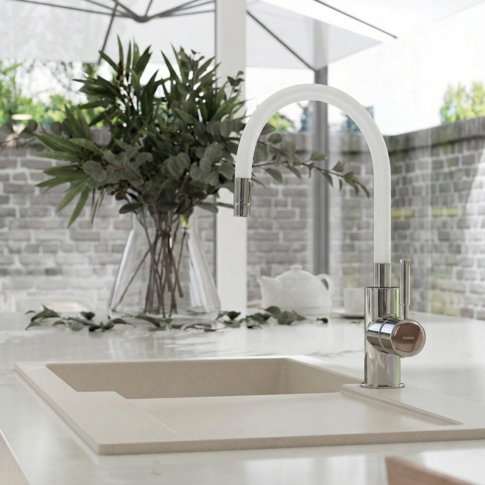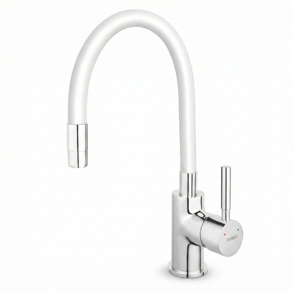 Opremljena je s keramičnim regulatorjem za zanesljivo in natančno delovanje ter je primerna za montažo na eno odprtino. Prilagodljiv izliv omogoča prosto oblikovanje in prilagajanje po potrebi, z nastavljivim dosegom in višino. Za prijeten in varčen pretok skrbi regulator pretoka M22×1, priložene pa so tudi prožne priključne cevi za enostavno namestitev.