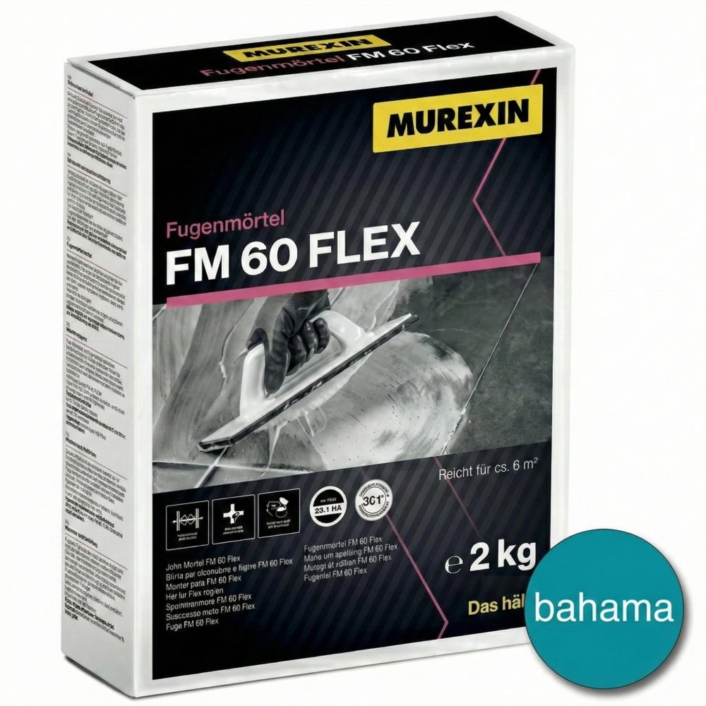 Murexin FM 60 Flex je praškasta, fleksibilna fugirna masa z efektom kapličenja (vodoodbojnost) za fugiranje keramičnih oblog, kamnitih plošč in mozaika na stenah in tleh. Primerna je za notranjo in zunanjo uporabo, tudi za terase, balkone, vlažne prostore ter talno gretje. Nizka absorpcija vode pomaga preprečevati flekavost in madeže po sušenju.