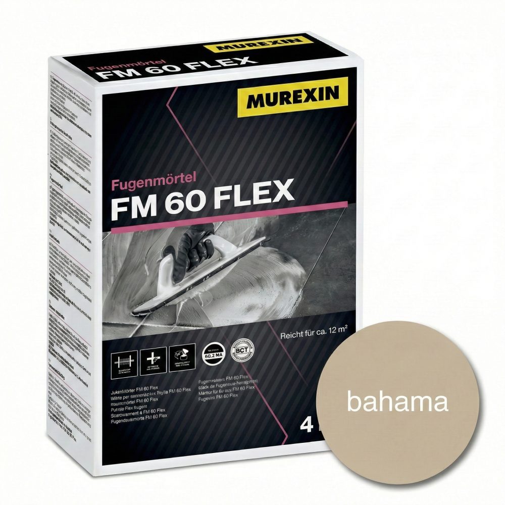 Murexin FM 60 Flex je praškasta, fleksibilna fugirna masa z efektom kapličenja (vodoodbojnost), za fugiranje keramičnih oblog, kamnitih plošč in mozaika na stenah in tleh. Primerna je za notranjo in zunanjo uporabo, tudi za terase, balkone ter podlage s talnim gretjem. Nizka absorpcija vode pomaga preprečevati flekavost in madeže po sušenju.