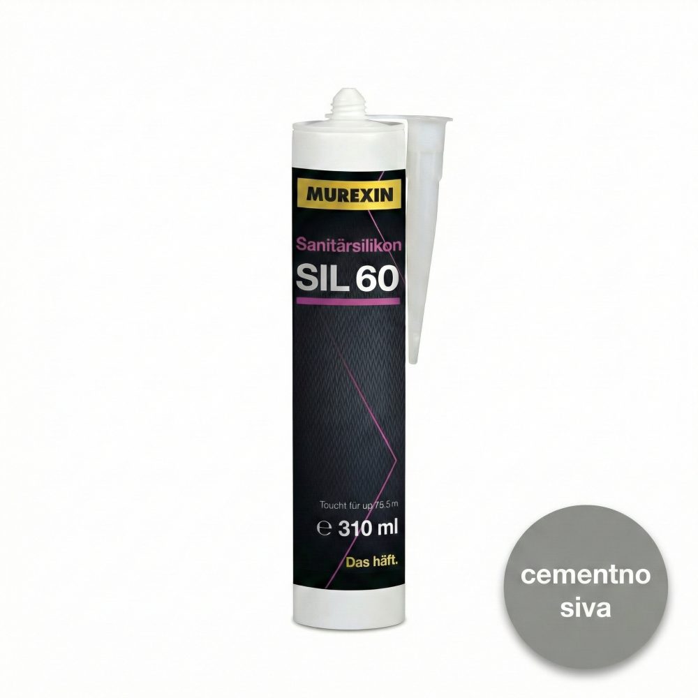 Murexin SIL 60 je enokomponentna sanitarna silikonska tesnilna masa za tesnjenje razteznih fug ter stenskih in talnih spojev pri keramičnih oblogah. Je UV in vremensko odporna, vodotesna in trajno elastična z razteznim pomikom do 20 %, hkrati pa je odporna na nastanek plesni in bakterij, zato je primerna za kopalnice, tuš kabine, kuhinje in druge vlažne prostore, tudi zunaj.