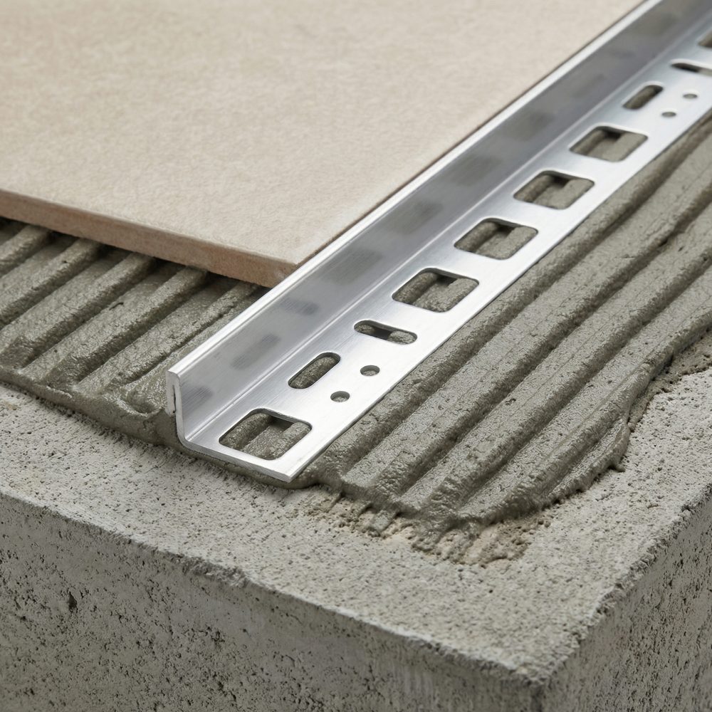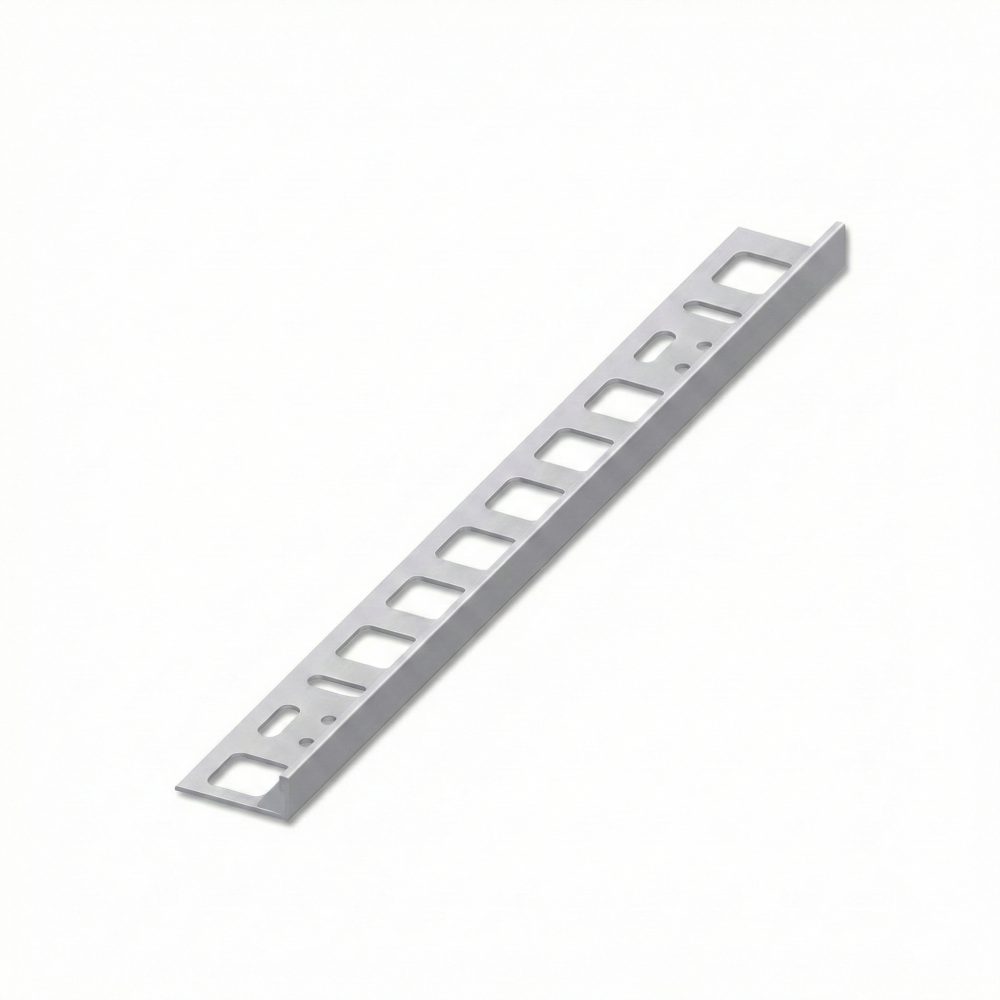 Aluminijast kotni profil je zaključni profil za robove in vogale keramičnih oblog, ki zaščiti rob ploščic pred udarci in odkruški ter poskrbi za čist, raven zaključek. Uporablja se pri zunanjih in notranjih vogalih (npr. niše, zaključki ob stenah, stopnice, robovi oblog), kjer želiš trpežen rob in lep prehod med površinami. Profil se vgradi v lepilo pod ploščice, vidni del pa ostane kot zaščitni zaključek.