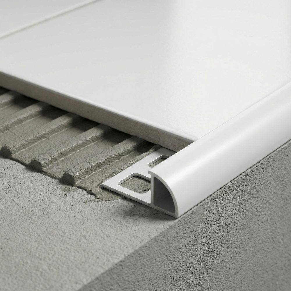 Aluminijast zaobljeni profil je zaključni profil za robove keramičnih oblog, ki ustvari mehkejši, zaobljen prehod in hkrati zaščiti rob ploščic pred udarci ter odkruški. Uporaben je na robovih oblog, nišah, zaključkih ob stenah in drugih prehodih, kjer želiš trpežen zaključek brez ostrega roba. Profil se vgradi v lepilo pod ploščice, vidni del pa ostane kot zaščitni zaobljeni zaključek.