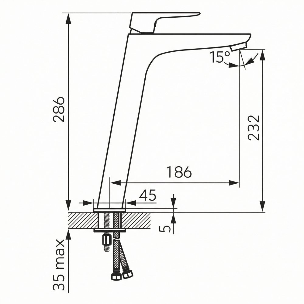 Enoročna armatura s keramično kartušo omogoča zanesljivo in natančno regulacijo pretoka ter temperature. Aerator FerroAirMix M24x1 poskrbi za prijeten in varčen pretok, Ferro Easy Clean System pa omogoča enostavno odstranjevanje vodnega kamna. Priložene so fleksibilne priključne cevi G3/8 – M8x1 za enostavno namestitev.